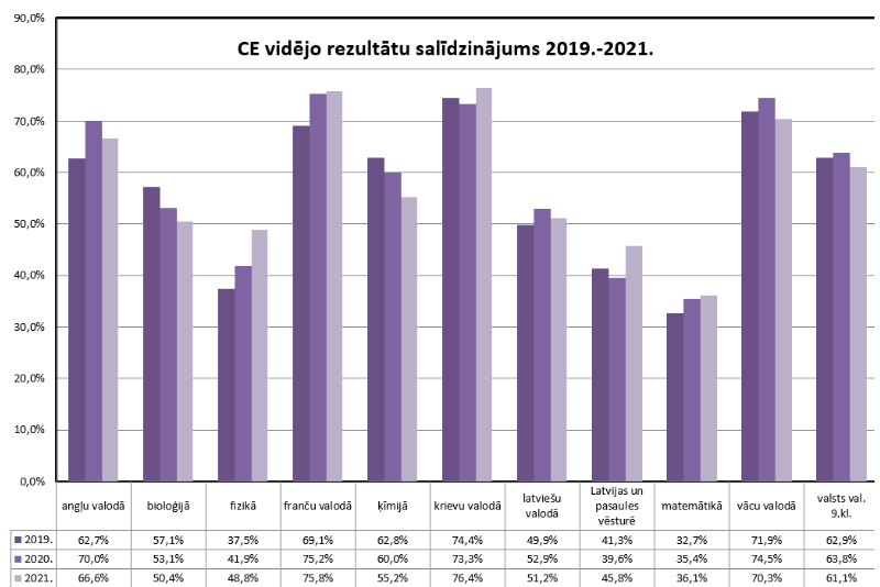 Daļā no eksaktajiem mācību priekšmetiem vidējais zināšanu līmenis pakāpeniski pieaug, tomēr citos, piemēram, ķīmijā, jau vairāku gadu garumā vērojams tā kritums.*