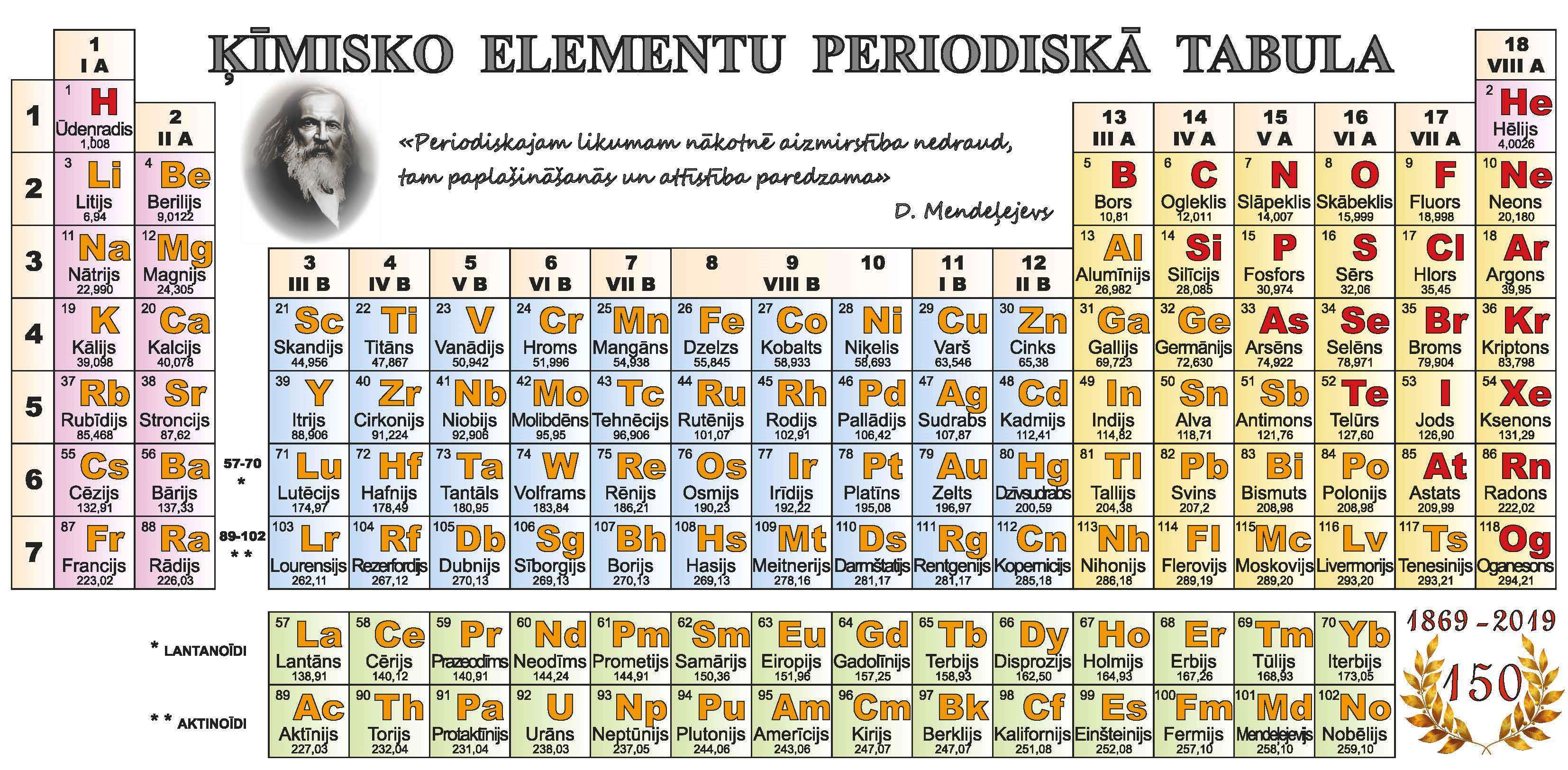 Latvijas Ķīmijas un farmācijas uzņēmēju asociācija (LAĶIFA) sadarbībā ar ķīmijas skolotāju Dr. paed. Mihailu Gorski un Daugavpils Universitātes asoc. profesoru Sergeju Osipovu 2019. gadā ir izveidojusi jaunāko un pilnīgāko Ķīmisko elementu periodisko tabulu, iekļaujot arī pēdējos identificētos ķīmiskos elementus.