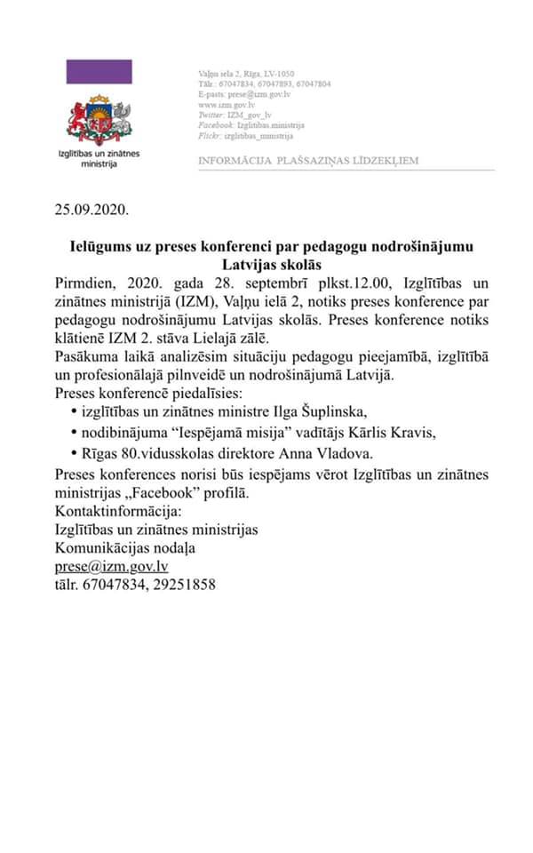 Redzu, ka tiek sasaukta preses konference par pedagogu nodrošinājumu Latvijas skolās. Droši vien diskusija būs par problēmām, kāpēc pedagogu trūkst. Interesanti, ka neviena no Latvijas augstskolām, kas gatavo jaunos pedagogus, šeit nav pieaicināta.